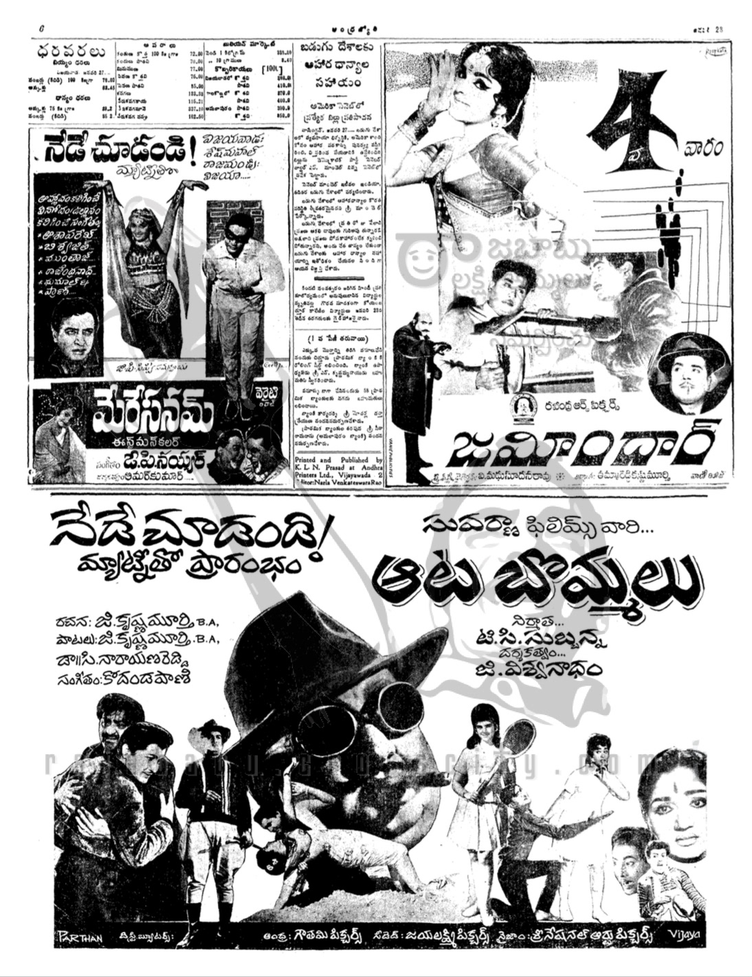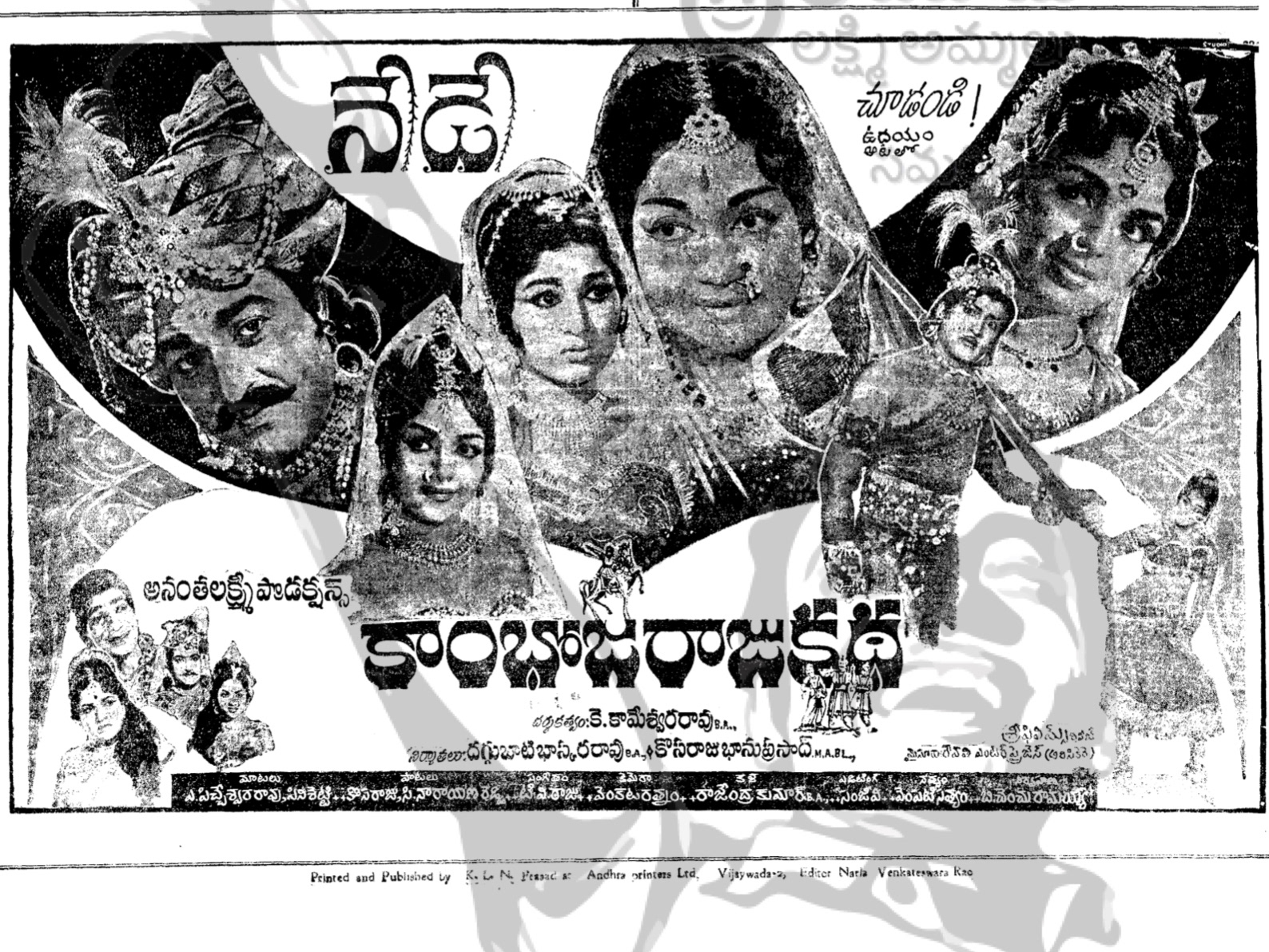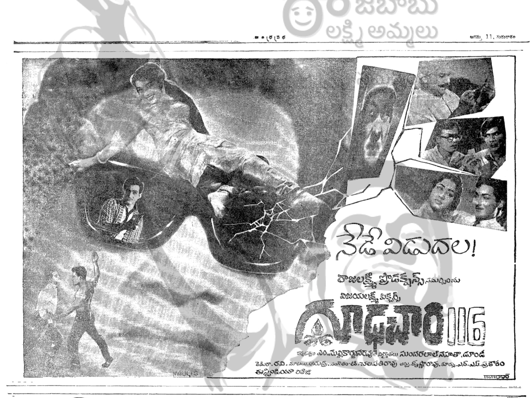 Singer: Ghantasala Venkateswara Rao, P.B. Srinivas, Pattabhi, P. Susheela, S. Janaki, K. Jamuna Rani, L.R. Eswari, Madhavapedhi Satyam
